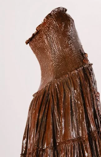 Erickson’s oversized female sculptures gesticulate different psychological states. Intricate as the wire winds its way through and across these female torsos, the forms are awkward and uncomfortable insinuating another world in which they live, a space of chaos and emotional conflict. They are about gesture as a matter of psychological expression, so much that the women have vanished and only their gestures have remained. Nostalgic in their appearance as the pulling of the past drapery, these sculptures embark on now a contemporary female form. These female forms primarily in shades of grey, black, brown, white and red emote different emotional states like empty vacuums they stand, sit in a scale that is difficult to ignore.
