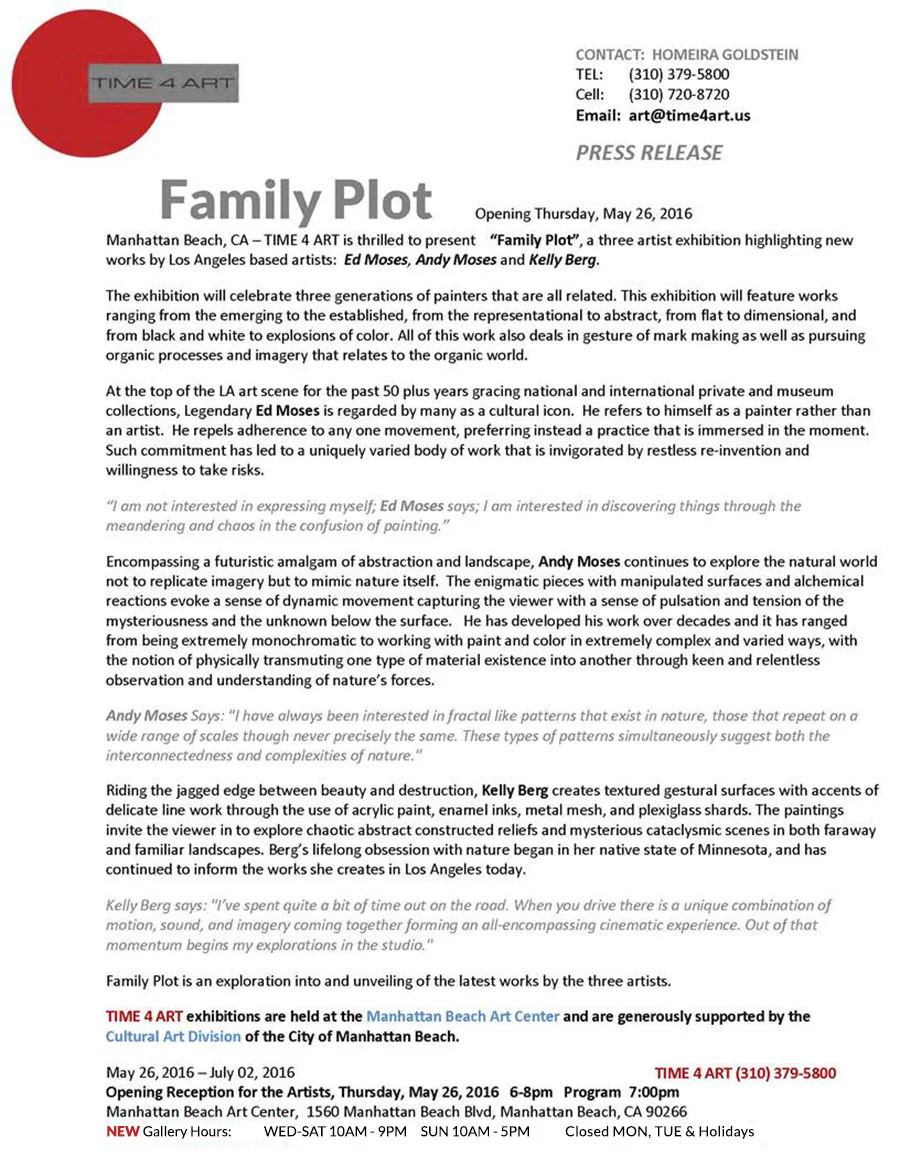 Family Plot View fullsize View fullsize TIME4ARTHomeira GoldsteinMay 26, 2016Family Plot, Ed Moses, Kelly Berg, Andy Moses Facebook0 Twitter Pinterest0 0 Likes