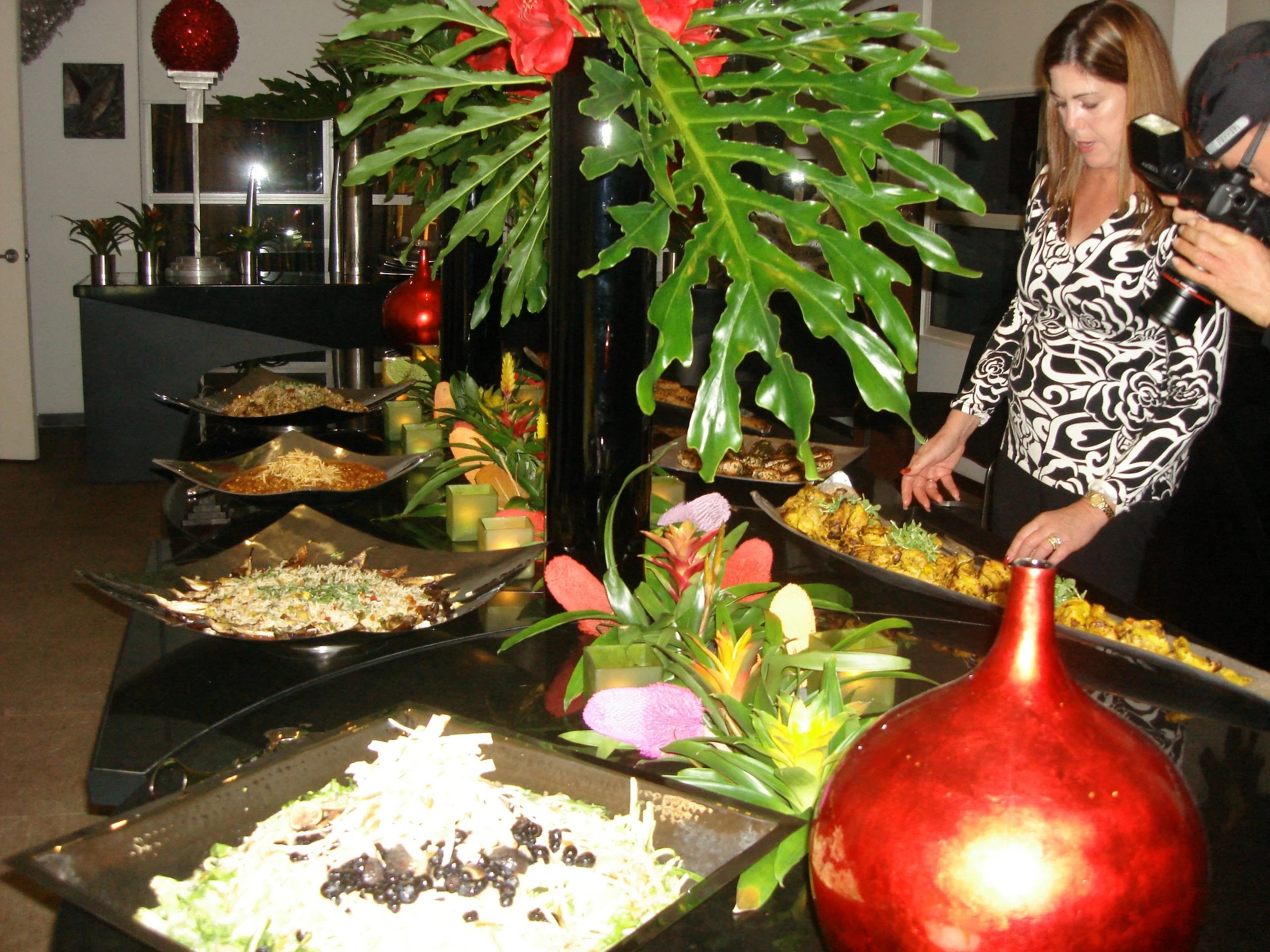 Stylish guests dined buffet-style from a delectable menu of grilled fish, deliciously marinated chicken, tender beef skewers, and an array of exotic fresh salad combinations and rice dishes, topped with fruit sorbet and ice cream for dessert.