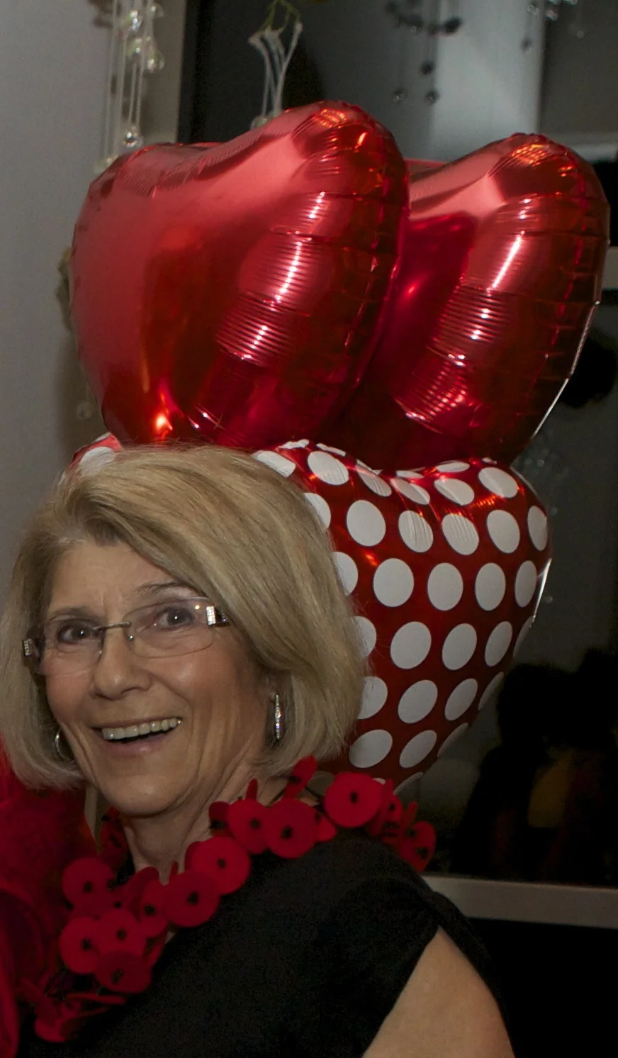 was at my Valentine’s Day party this year, and wore this artistic red piece around her neck that